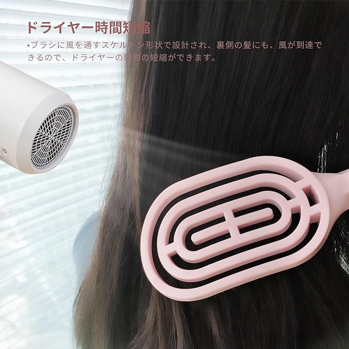 風通し設計で、ドライの風が速乾ブラシの隙間から通すことで、ドライヤーの時間が短縮できる。